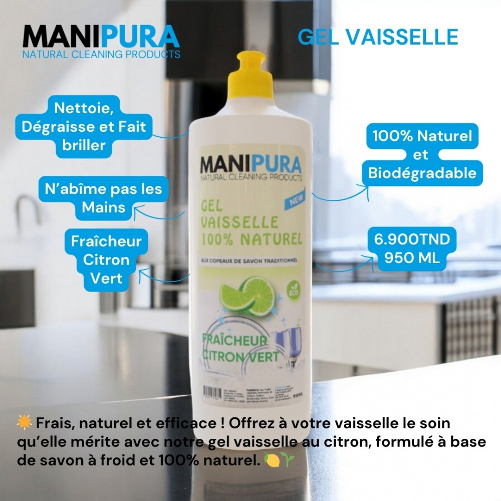 Gel Vaisselle Fraîcheur Citron, 1L - Manipura